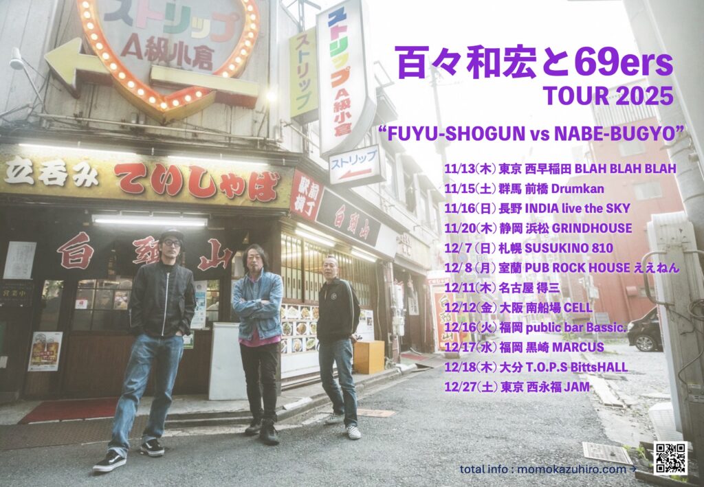 昨夜『TOUR2025 “FUYU-SHOGUN vs NABE-BUGYO”』の千秋楽を迎えた百々和宏と69ersが早くも2026年春のツアー計画を発表。