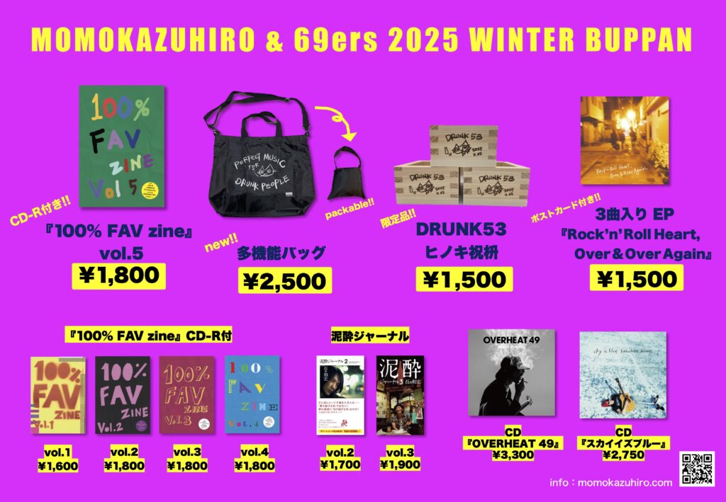 百々和宏と69ers TOUR2025 “FUYU-SHOGUN vs NABE-BUGYO”ツアー会場での物販についてお知らせします。