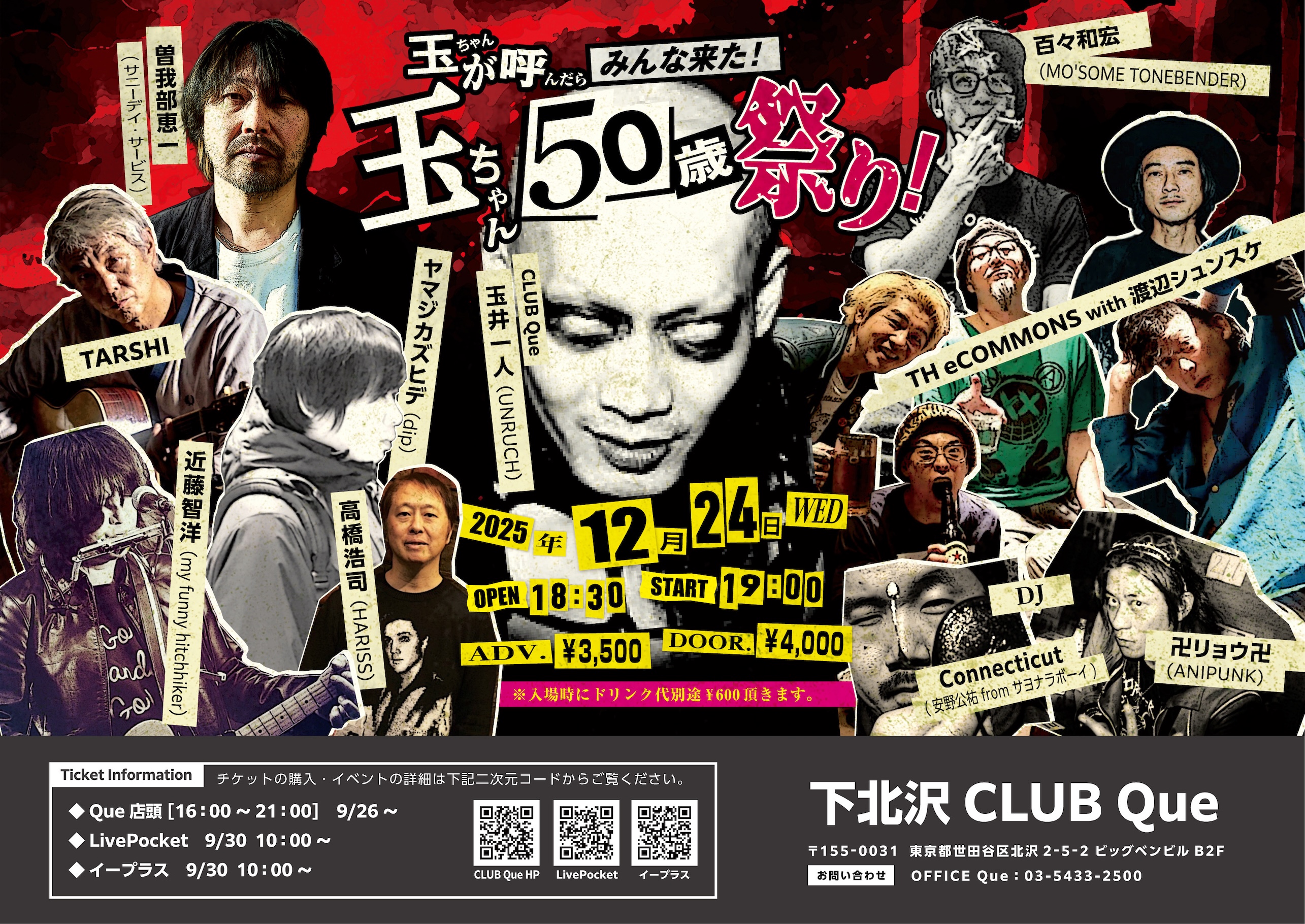 2025.12.24(水) 下北沢CLUB Que『玉ちゃんが呼んだらみんな来た!玉ちゃん50歳祭り!』
